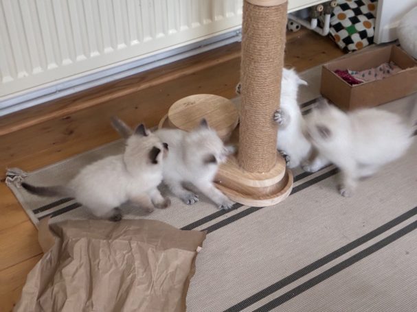 Unsere Katzen leben in einem liebevollen Haushaltsumfeld, was ihr Temperament und ihr Sozialverhalten fördert. Sie wachsen inmitten unserer Familie auf und lernen die gewöhnlichen Haushaltsgeräusche kennen.