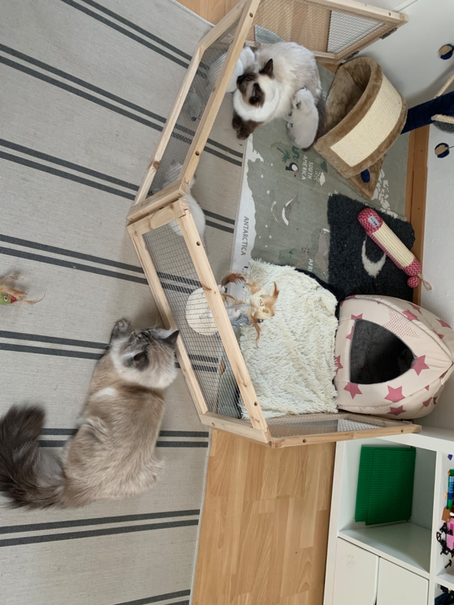 Unsere Katzen leben in einem liebevollen Haushaltsumfeld, was ihr Temperament und ihr Sozialverhalten fördert. Sie wachsen inmitten unserer Familie auf und lernen die gewöhnlichen Haushaltsgeräusche kennen.
